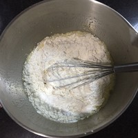 滤入低筋粉 泡打粉 盐少许。搅拌至无颗粒 再加入玉米油搅拌至柔滑