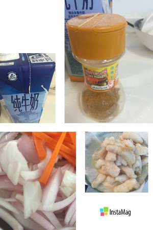 泰国咖喱粉、牛奶、盐、胡椒粉、料酒: