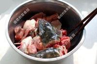 放入盆中,淋入3勺料酒,一勺盐、一勺白胡椒粉腌制一下。