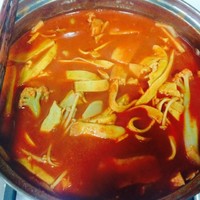煮的时候也要不断搅拌,要注意土豆是不是熟了,可以边吃边煮也可以煮好捞起,我这个是煮好捞起的,就是素鸡煮碎了,豆皮在下面。这次选用的妙薯仔家的调料,推荐小厨娘家的调料哦~这是我们小姐妹每次聚会的必须品。