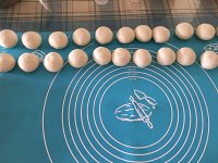 把油酥平均分成12份搓圆,同时也把松弛好的油皮取出来平均分成12份揉圆。