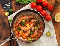 Tip:整个烹饪过程中,虾不接触水,所以口味更新鲜。低温烹饪让虾肉脆嫩。