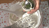 打发好的鲜奶油倒入之前的乳酪糊,用打蛋器画圈搅拌。不用怕消泡,这不是蛋白霜。
