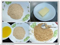 饼底部分 步骤一:先把消化饼干用擀面杖碾碎,细一点备用。 黄油隔热水液化,加入到消化饼干碎里,搅拌均匀