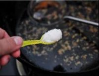 取大蒜两瓣,压成蒜末后加入1小勺清水和少许盐混合制成蒜汁备用