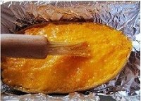 将拌好的红薯泥重新填充到红薯壳中,抹平
