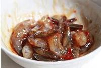 Tip:1挑1抽去泥线: 一挑:用牙签插入鲜虾尾部第二节处,轻轻一挑; 一抽:拧住虾头处,轻轻一抽;