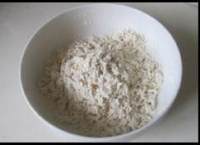 将腌好的鸡腿肉丁再放入准备的絮状面粉均匀的裹上面粉