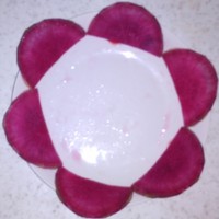 中间留个空圆心,拿几片稍薄些的卷做花心,做好后放在中间,一朵鲜艳的花就这样诞生啦!哈哈,放在餐桌上是不是特光彩夺目呀!
