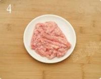 葱姜末倒入剁好的肉蓉内,放入适量盐﹑料酒﹑香油进行调味,放少许白糖提鲜