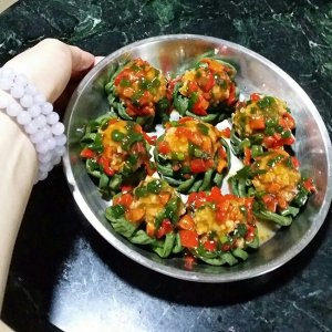 把肉馅酿在豆角内。蒸锅水开后放入,大火蒸10分钟。