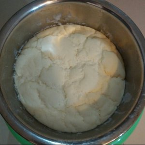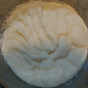 将酵母水慢慢倒到面粉里,筷子朝一个方面搅拌