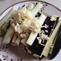 切好的蒜末撒在茄子上~