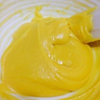 搅拌好的黄油蛋糕糊应该是漫流动的状态,很顺滑,很浓稠,之后将黄油糊装入一个保鲜袋(用裱花袋有点浪费),然后一个角剪个一厘米左右的三角口,把蛋糕糊挤在模具里,挤到10成满、之后在正中央再拉一个山头,就是满到冒尖。这步很关键,不这么满的话烤出来不会圆的。