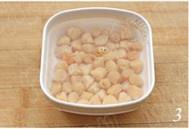 将对虾剥出虾仁、文蛤取肉去壳、干贝滤干水分备用