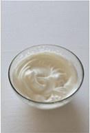 将一半量的蛋白放入步骤3的蛋黄液中,用橡皮刮刀拌匀
