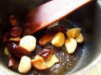 入泡发香菇的水,糖色水,米酒,用盐,白胡椒,生抽,少许老抽调味。