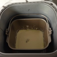 面包桶装面包叶片,将鸡蛋、奶油奶酪(切小块)和糖放入面包桶,使用饺子皮程序混合15分钟。