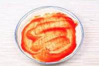 取出面饼刷上亨氏番茄糊,撒上披萨草、蒜茸