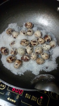 鹌鹑蛋下锅,慢慢轻轻炒,大概炒5分钟吧