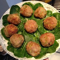 平底锅热黄油,将做好的丸子放入小火煎。普通油亦可,我们家习惯用橄榄油或者亚麻籽油等