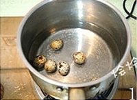 鹌鹑蛋放锅内煮熟,剥壳备用
