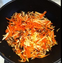 冬笋,胡萝卜,冬菇去蒂,改刀切细丝