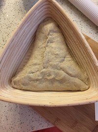 整形成三角面团放入发酵篮,我的发酵篮大了一号(o^^o)(大家也可以整形成其他形状啦)