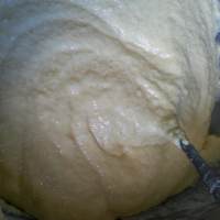 三分之一打好的蛋白倒进浆中,Z型轻轻搅拌,烤箱预热