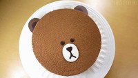 打印一张布朗熊的图片,脸的直径和准备好的提拉米苏差不多大就可以了,然后在上面铺上油纸,固定住