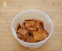 把洗干净的豆干切成片状,比较容易入味。如果你买的豆干比较薄就不用切了