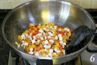 加入半量的清水,翻炒均匀,至水分收干时关火起锅