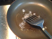 锅里再倒入一点底油,油温不太热时就放冰糖下去小火炒化,火大容易糊。