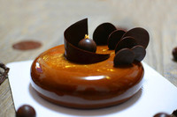 Tip:1、这款蛋糕的淋面相比其他淋面更稠一些,所以淋的时候淋面温度稍微高一些。 2、慕斯蛋糕体一定要在-18度的条件下冷冻够10个小时,淋面淋上去才会亮。 3、一定要把淋面里的气泡震出,要不淋面会有很多气泡。