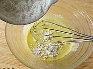 低筋粉和玉米淀粉混合,过筛后倒入打好的蛋黄液中