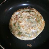 1)将250g面粉装盆中,慢慢加开水,一边加水,一边用筷子搅成面絮,最好倒入冷水,用手揉成光滑的面团,静置15分钟左右; 2)将25g面粉,切碎的葱花,盐装碗中,搅拌均匀; 3)色拉油或猪油加热至冒烟滚烫的状态,倒入2中; 4)将面团分6等份,每份外层抹上少许油。取其中一个面团擀成薄面皮片,刷上3中制作的酥油,然后将面皮卷成长条后绕圈盘好,再静置15分钟左右,或者搁冰箱冷藏过夜;