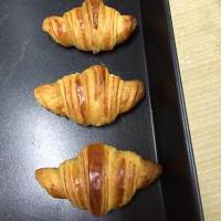 羊角在25-30度的温度下醒发至1.5-2倍大即可,不一定用体积判断醒发的大小,可以侧面观察酥皮厚度!表面刷全蛋液