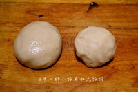 用包包子类似的方法把前面处理好的豆沙和蛋黄包入水油皮中。