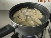 锅里加入足量清水,大火烧开后,逐个下入饺子,用勺子轻轻推动,防止粘锅底