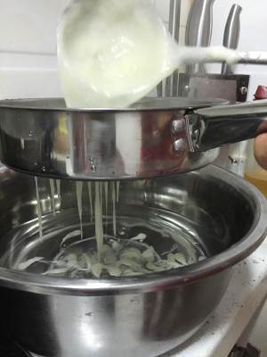 乘出搅团往下漏,鱼鱼出来了。