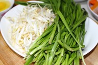 制作方法: 1、豆芽、韭菜清洗干净,韭菜切5cm左右段备用