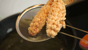 炸至鱼肉变金黄色即可捞出,沥油放碗中备用。