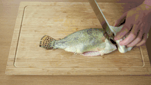 Tip:1、处理鳜鱼的时候,用厨房布按住鱼身,可以防滑并且避免鱼刺到手 2、挑选稍微大一点、肉厚一点的鳜鱼,这样在鱼肉上切菱形花纹的时候不容易切断鱼皮。 3、鱼肉裹生粉的时候注意刀切的缝隙也要裹上,入锅油炸之前要拍掉多余的生粉,否则会吃到粉团,影响口感。