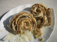 制馅:将熟面粉过筛,然后放入白糖拌匀均匀,放入盆中,在把花生碎、白芝麻放入,同时加上盐、花椒面、鸡蛋液及猪油,搅拌,再将葱末放入,拌匀即可。(应视葱的干、湿程度决定投放多少,以使馅料软硬适度)。