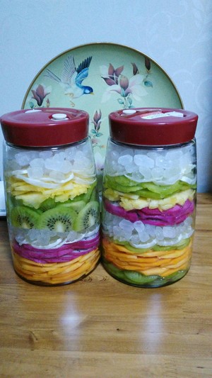 Tip:1.水果一定要选择新鲜的,洗净后一定要沥干水份。 2.容器最好选择玻璃的,盖子上如果没有排气孔,可每隔两天打开盖子放一下气