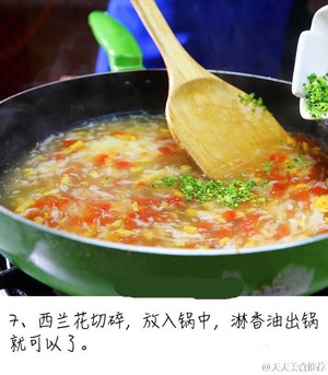 7、西兰花切碎放入锅中,淋香油出锅。