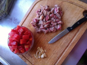 牛肉冷水下锅焯一下断生后捞出切块,番茄切块,备用。
