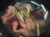 鱼两面煎好后,把葱姜蒜,八角,干辣椒倒进去