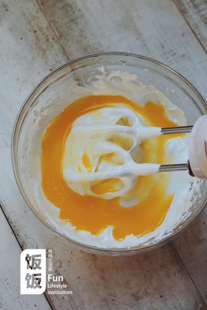 蛋白部分的材料混合,用电动打蛋器打至硬性发泡。