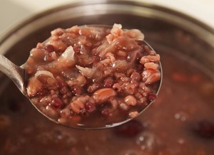 红豆、花生洗净浸泡2小时以上,大米冷水浸泡半小时。